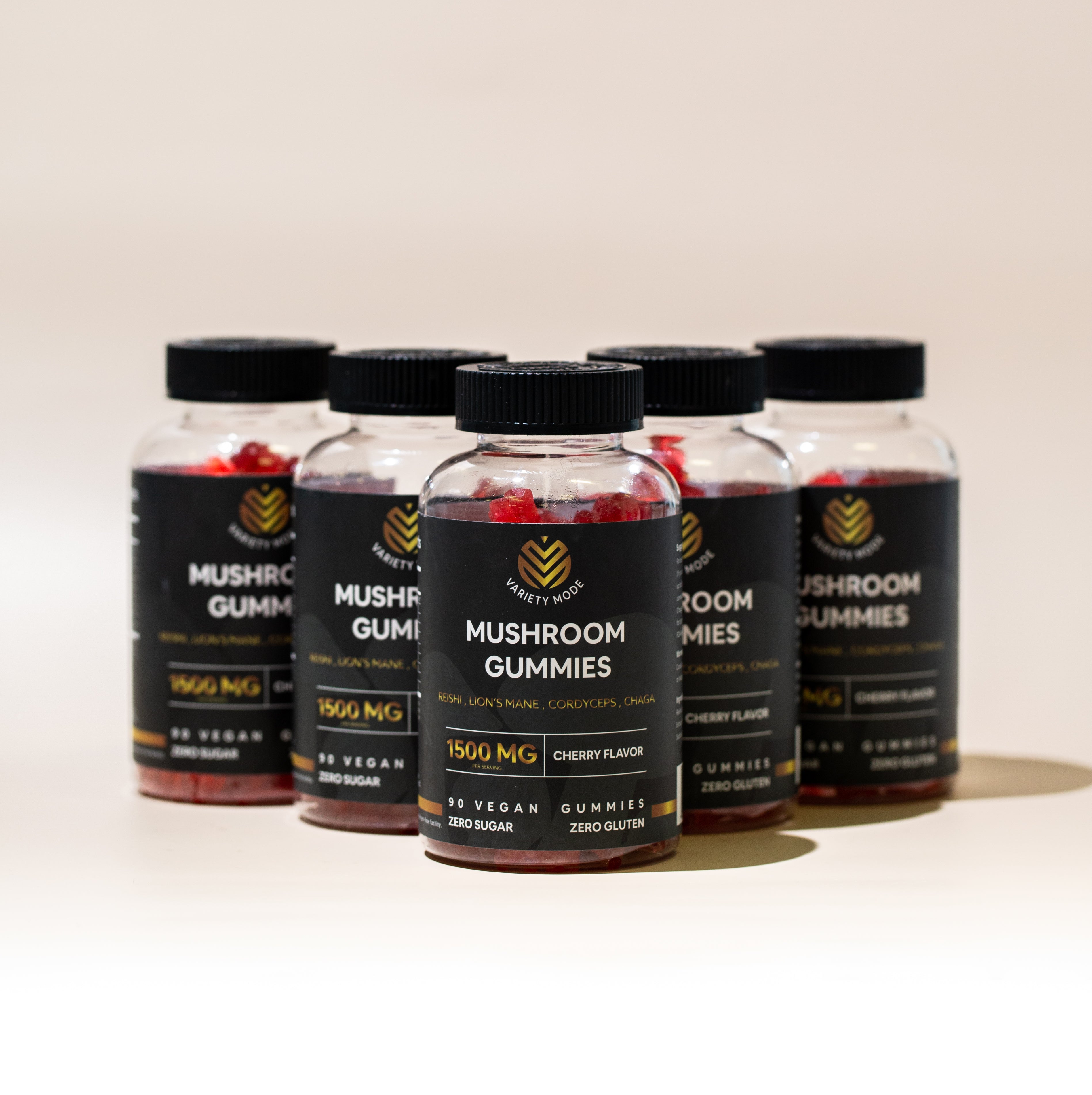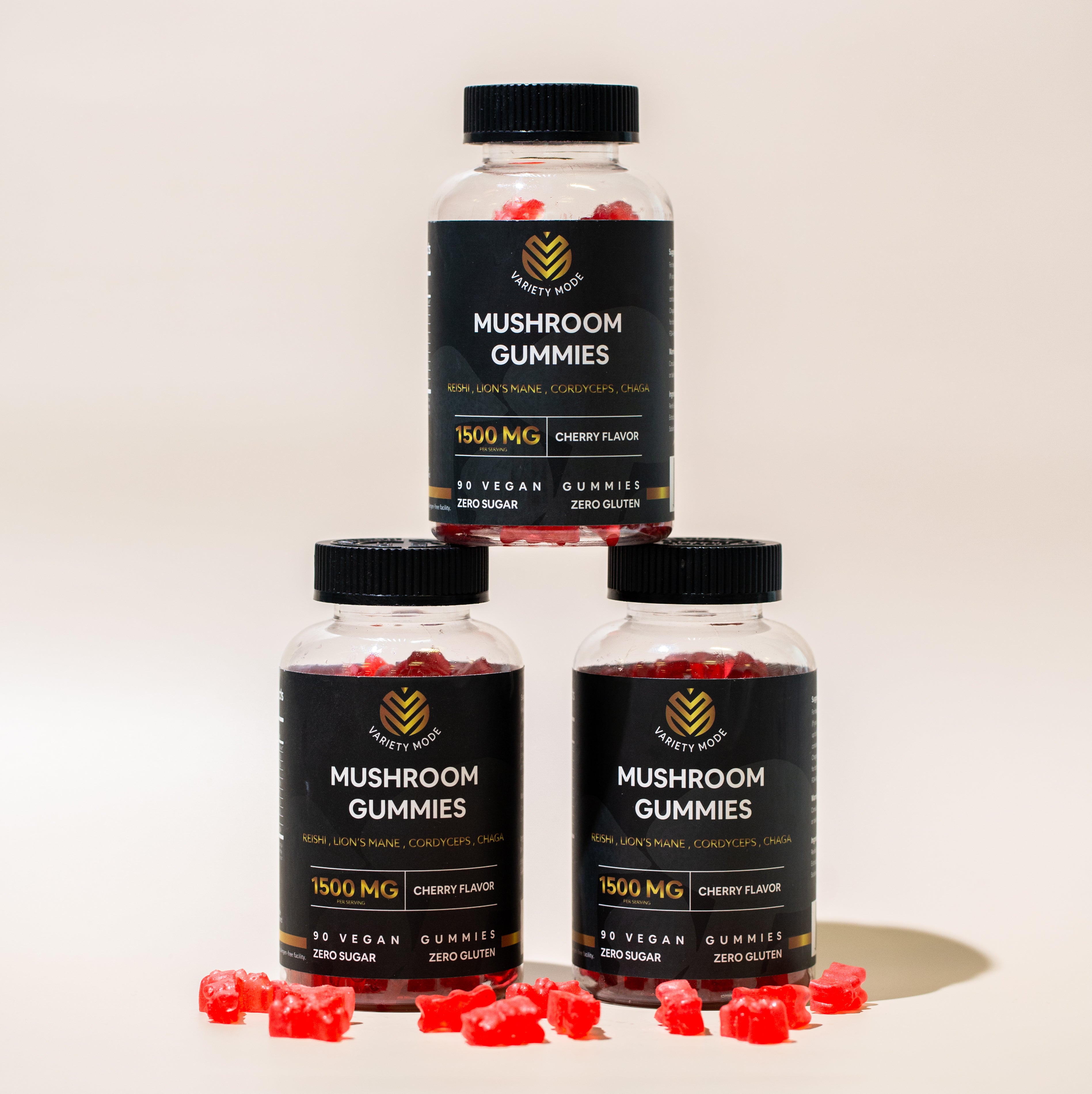 Delicious cherry-flavored gummies packed with mushrooms to boost focus, immunity, and mood.